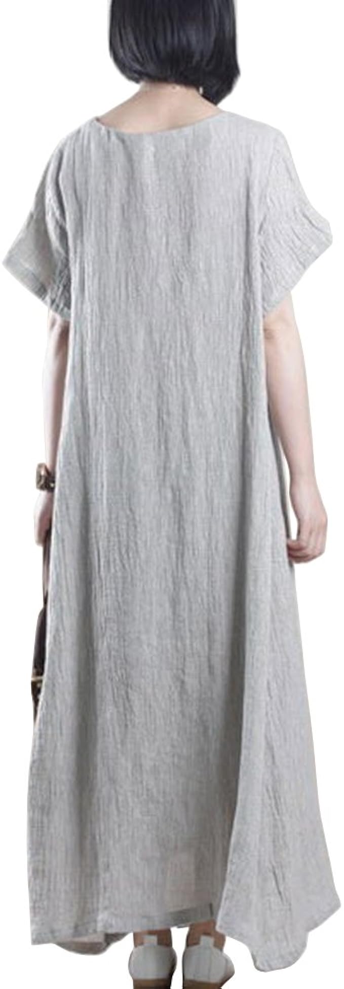 Amazon ワンピース レディース 夏 春 五分袖 半袖 マキシ 大きいサイズ ゆったり リネン 麻 棉 無地 灰色 ワンピース チュニック 通販
